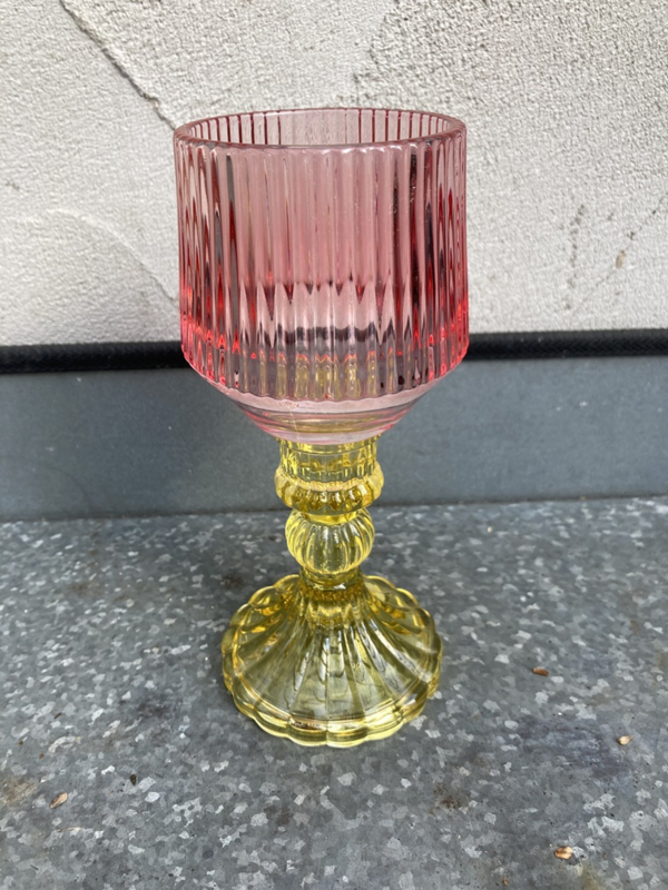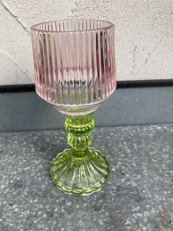 Glazen Lamplichtjes op Voet – 18 cm roze groene voetGlazen Lamplichtjes op Voet – 18 cm roze groene voet