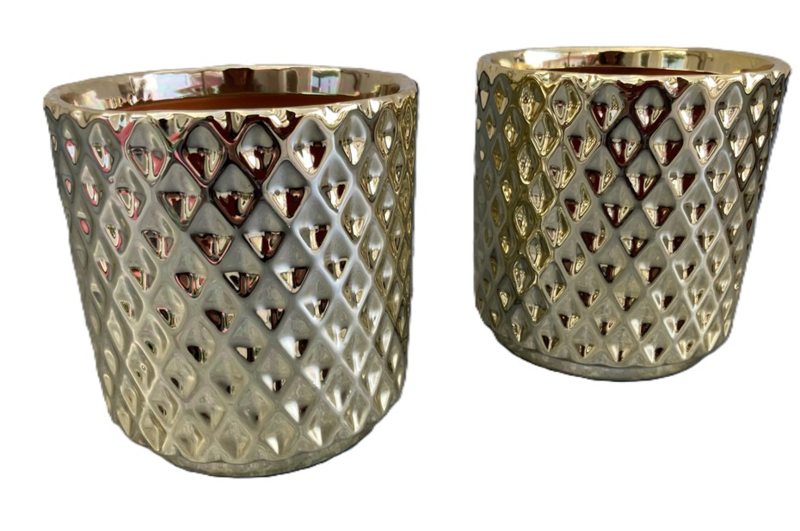 De diamond metallic pot heeft diamanten patroon met een gladde metallic afwerking.