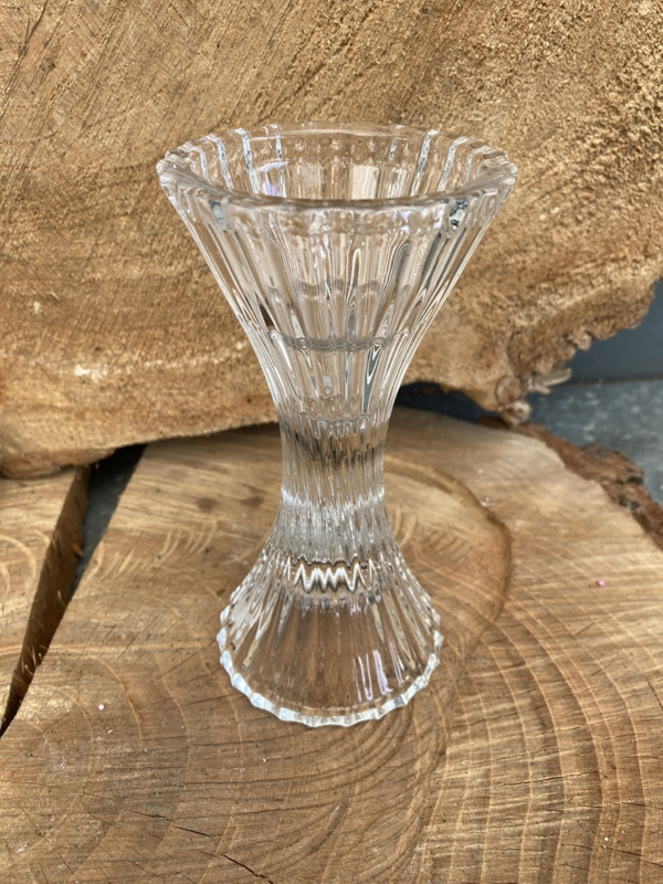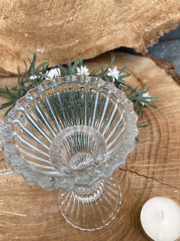 KANDELAAR RIBBEL HELDER GLAS DINER- WAXINELICHT 2 DLG