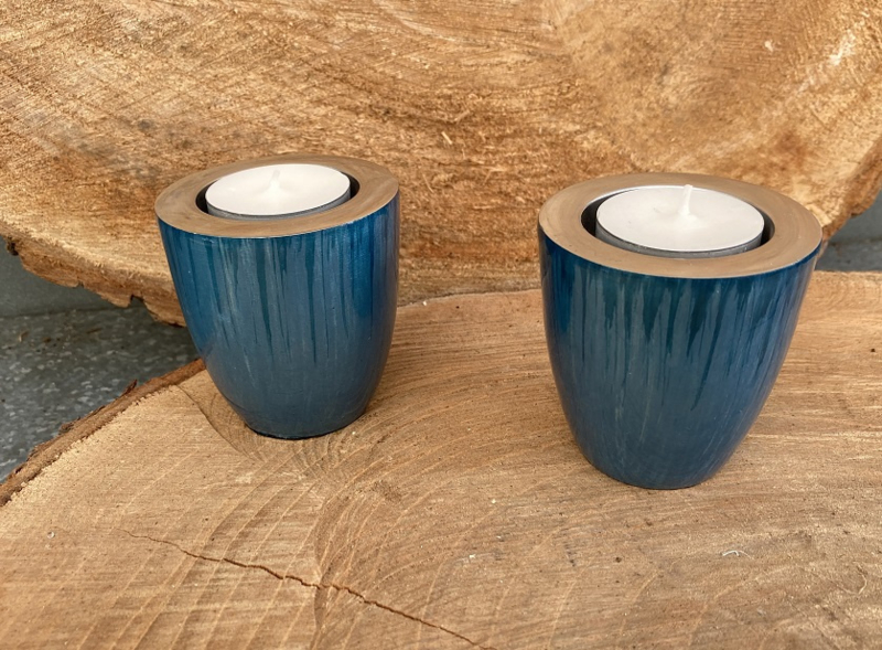 WAXINELICHT/ KANDELAAR ZWAAR ALUMINIUM TURQUOISE